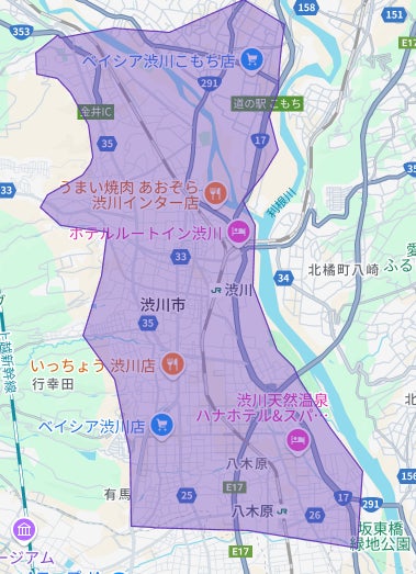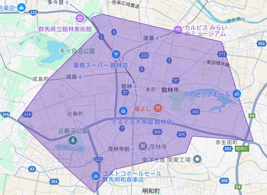 - 群馬県:桐生市、みどり市、館林市、渋川市