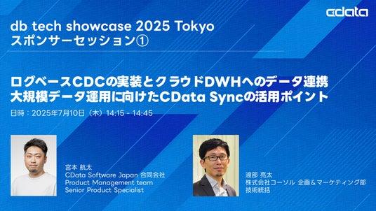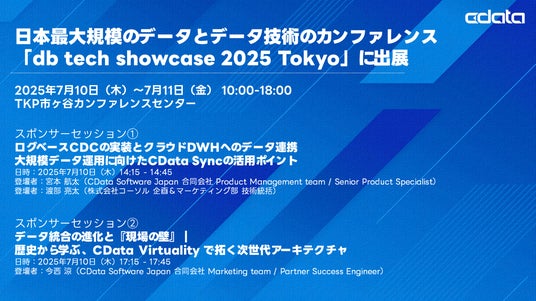 CData Software Japan 合同会社(本社:アメリカノースカロライナ州、日本オフィス:宮城県仙台市、代表社員 職務執行者:疋田 圭介、以下CData)は、2025年7月10日(木)~7月11日(金)に開催される「db tech showcase 2025 Tokyo」に出展します。