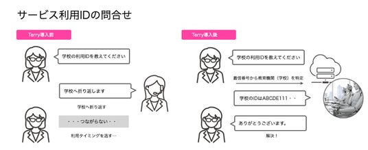 学校向け教育事業(ベネッセハイスクールオンラインサービス)では、ご利用頂く教育機関(学校)からの利用IDの問い合わせへの電話受付業務において、教育機関(学校)と複数回のやり取りを要するなど迅速な対応に課題がありました。教育機関への利用IDの案内を、セキュリティを担保しつつ「Terry」が回答することでタイムリーな案内に繋げ、コンタクトセンターの業務効率化ならびにサービス満足度の向上を目指すべく運用を開始しております。