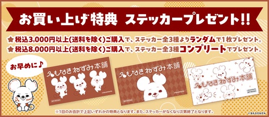 ・税込3,000円以上(送料を除く)ご購入で、ステッカー全3種よりランダムで1枚プレゼント。