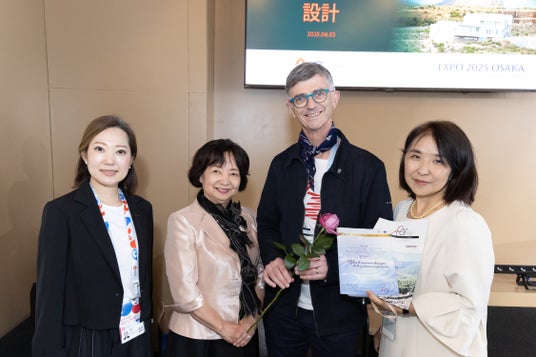 (左より):池岡真知子氏(Femmes du Monde)、網野妙子氏(株式会社AMINO代表取締役社長)、ジャック・メール氏(COFREX会長 兼 フランス館コミッショナー)、中巣真幸氏(APGF代表)
