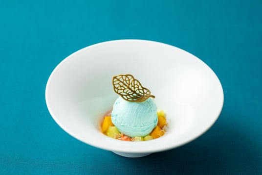 フィナーレを飾るデザートには「宮城の海の塩のミルクジェラート」。