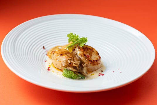 コースでご用意するメインディッシュと、味わいをかえた帆立貝の鉄板焼きはア・ラ・カルトでもお楽しみいただけます。