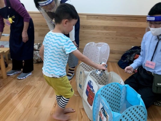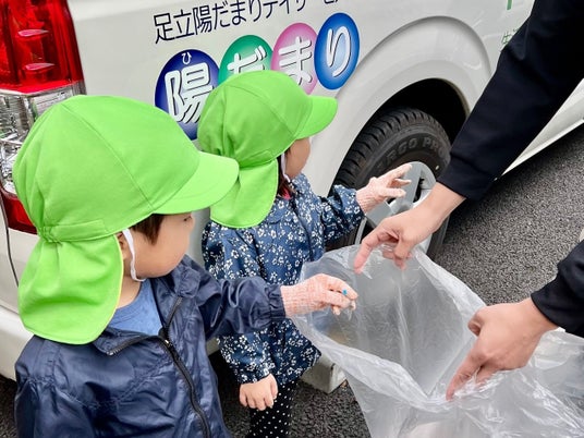 出張講座は約1時間で、足立区環境情報プラザからボランティアとスタッフを招き、園児と紙芝居「ちょっとまって!ドンキチくん」の読み聞かせや「ごみ分別ゲーム」を実施します。食べ終わったおやつの容器のリサイクルや、牛乳パックがティシュペーパーに生まれ変わることなどを伝え、園児の生活も地球環境問題につながっていることを知ってもらいます。