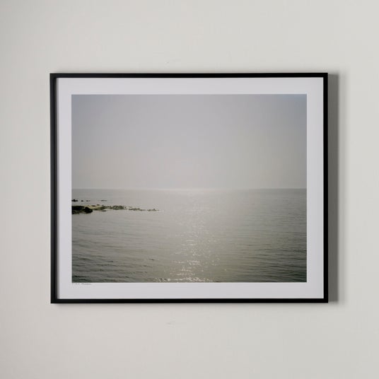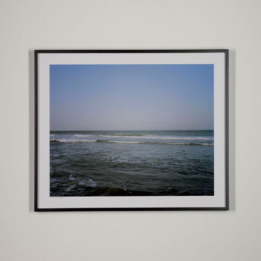 蓮井は、船舶や人の気配を画像処理で取り除き、人間不在の架空の海を表現。「写真とはありのままを記録するもの」という自身の信念と葛藤しながら、自然と文明の関係、写真の本質に向き合っています。
