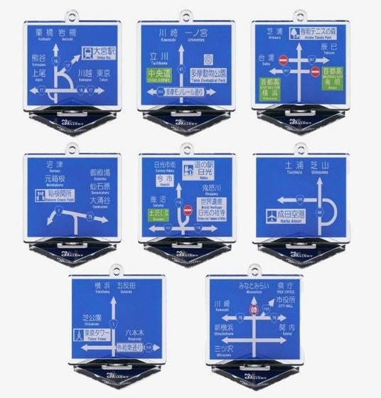 ゼンリンは、独自調査から収集・整備した地図データコンテンツをナビメーカー等に提供しています。当商品は、ゼンリンが実際に整備している方面案内看板データをアクリルスタンドキーホルダーにした人気シリーズで、関東エリアの観光地や各地を象徴する場所(ピクトグラム)のある看板をセレクトしました。「文具女子博トーキョー」では、中身が見えないブラインドパッケージで販売します。どの方面看板が入っているかはお楽しみに。