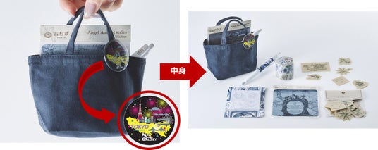 「文具女子博トーキョー」の開催地である東京をデザインした缶バッジや古地図の西洋タイルブルーデザインのステーショナリー等が詰まったミニトートセットを販売します。西洋タイルブルーデザインのボールペン(ゼブラ サラサクリップ)はセット限定商品です。