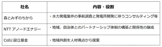 全国で水力発電事業を手がける株式会社森とみずのちから(代表取締役:貝本隆三、本社、奈良県吉野郡下市町、以下「森とみずのちから」)は、エネルギー流通ビジネスを展開するNTTアノードエナジー株式会社(代表取締役社長:岸本 照之、東京都港区、以下「NTTアノードエナジー」)および共創を軸にした新しい大学設立に取り組む一般社団法人 CoIU設立基金(代表理事:井上博成、岐阜県飛騨市、以下「CoIU設立基金」)と、国内の豊富な水資源を生かした小水力発電事業および地域共創事業の検討のための協定を締結しました。