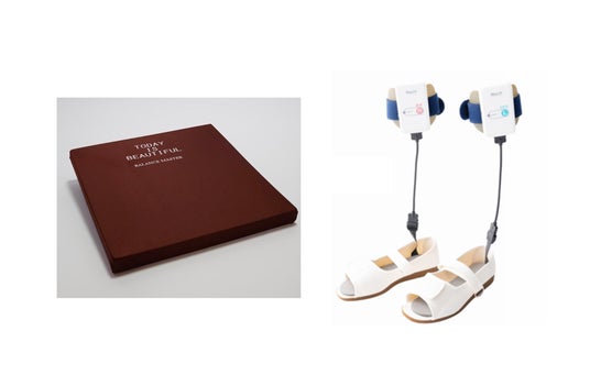 運動改善補助セットに含まれる 左)インパクターマット と、右)足圧測定器。
