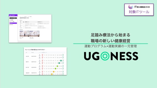 足踏み療法や姿勢改善に知見を持つ株式会社うごきのクリニック(本社:東京都中央区、代表取締役:後藤淳一)はこの度、同社が開発した運動管理プラットフォーム「UGONESS(ウゴネス)」が経済産業省「IT導入補助金2025」の対象ITツールとして正式に採択されたことを受け、2025年7月1日(火)より、同サービスの一般提供を開始する。今後、人手不足や利用者の運動改善に悩む介護・福祉施設だけでなく、健康経営に取り組む様々な業種の企業に向けて普及を目指す。