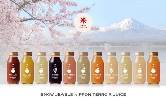 SNOW JEWELS(R)では、現在、47都道府県のご当地ジュース製造を目指しています。今回新たに加わったのは、北海道ホワイトグレープ、秋田県ブレンドアップル、長野県フジアップル、愛媛県 媛一みかんの4種。それぞれの土地で育った果実の“旬”と“香り”をそのまま閉じ込めた、個性豊かなフレーバーが仲間入りしました。