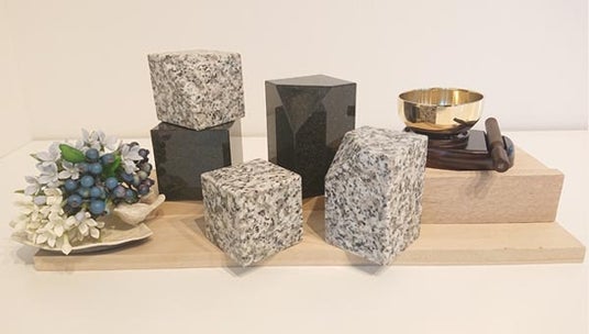 想石(おもい)とは、墓石を解体処分する前に希望のサイズやデザインに加工するオプションサービス。手元供養碑として仏壇の中などに置いたり、兄弟姉妹・子どもへの形見分けとしてのご依頼も多いものです。