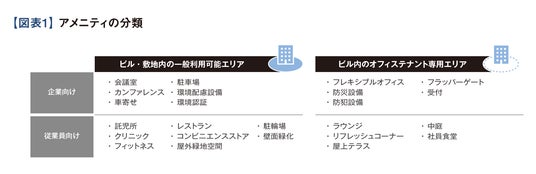 今回の調査では、2000年から2024年までに竣工したビルのうち、1フロア面積200坪以上・延床面積3,000坪以上の大規模ビル233棟を対象に、24種類のアメニティ【図表1】について、設置傾向を調査しました(【付録】参照)。