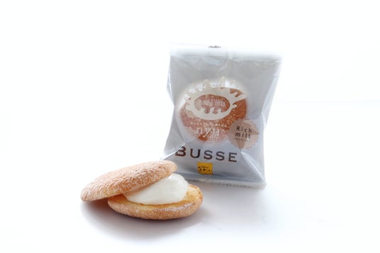商品2:nyuブッセ リッチミルク 販売価格:1個 270円(税込) お菓子のさかい人気No.1の「幸福の黄色いブッセ」がさらに美味しくなりました。ふわふわ、しっとり、やさしく溶けていくような口あたりの生地に、ジャージーミルクで仕立てた濃厚なクリームを挟みました。ミルクのコクがやさしく広がり、どこか懐かしい気持ちになる、さかいで愛され続けるひと品です。