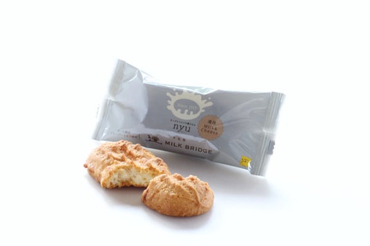 商品3:nyuミルクブリッジ 販売価格:1個 270円(税込)さかいで約30年愛される銘菓「牛乳橋」。従来の牛乳橋を濃厚なミルクとチーズの風味とともにリニューアルしました。昔、牛乳を運んだ小さな橋をモチーフに、濃厚なミルクの甘みとチーズの塩気をボーロ生地に閉じ込めました。ほろりと崩れる口あたりのなかに、まろやかな余韻が残るやさしい焼き菓子です。