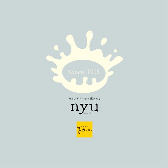 お菓子のさかいのルーツは、福島県石川町で明治19年(1868年)創業の「酒井牛乳店」にあり、地元の人々に新鮮な牛乳を届けていました。大正2年(1913年)には、牛乳を使った菓子づくりに着手。創業から112年を迎える今年、原点である“牛乳屋”としての歴史を今一度見つめ直し、ミルクの魅力を現代の感性でお客様に届ける新ブランド『nyu』を立ち上げました。「ニュー」とは、牛乳の“乳”であり、全ての商品に北海道産の濃厚なジャージー牛乳を使用しています。ロゴマークにはブランドの商品コンセプトを体現するキャッチコピーとして、「たっぷりミルクに癒される」と記載しました。弊社のお菓子のおいしさの記憶を呼び覚ますブランドとして、2年にわたり5商品を開発しました。