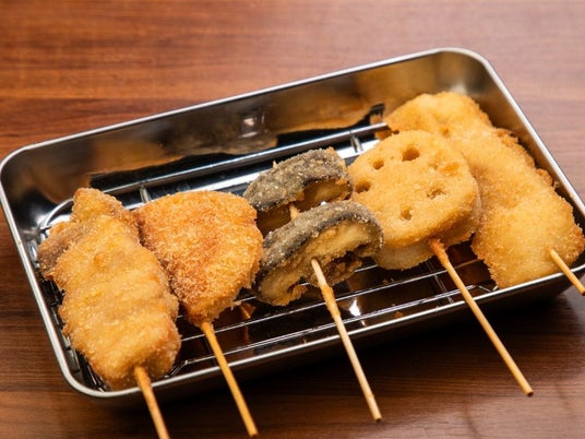 串カツ 盛り合わせ5種旬の食材や定番人気のネタを厳選した、串カツ5種の盛り合わせ。衣はサクッと軽やかに、素材の旨みを閉じ込めて揚げています。ソースや塩で味わえば、それぞれの個性が引き立ち、お酒との相性も抜群。