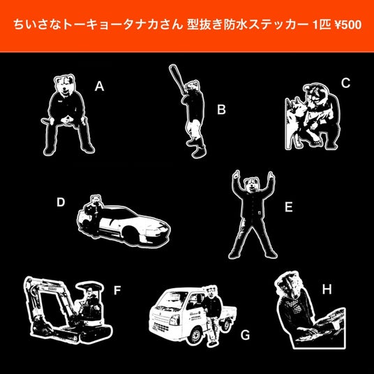 ちいさなトーキョータナカさん 型抜き防水ステッカー(全8種)各550円