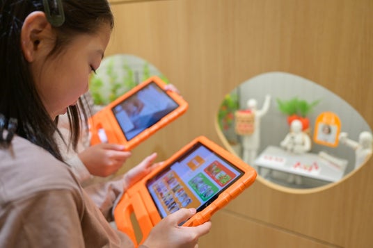 PRルームには、10台のタブレット端末を用意し、オンライン工場見学や畑の360°動画を楽しんで