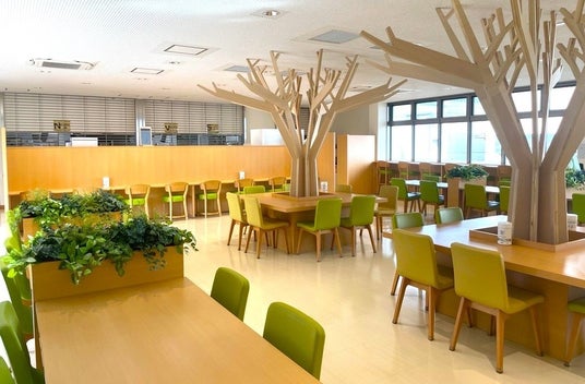 見学者向けPRルームの他、従業員施設も順次リニューアルを行っております。より働きやすい環境の整備を目的に、昨年には従業員食堂をリニューアルし、今回のPRルーム新設に合わせ、事務所と会議室を一新しました。従業員施設においても、野菜の会社らしい、落ち着いたデザインを取り入れ、従業員同士のコミュニケーションの活性につながる工夫をこらしています。