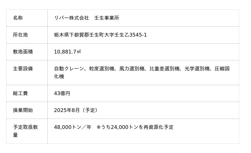 ※3 アルミニウム、銅、ステンレスなどの非鉄金属とプラスチックの混合物。なお、壬生事業所で発生したミックスメタルについては、リバー那須事業所にて再選別予定
