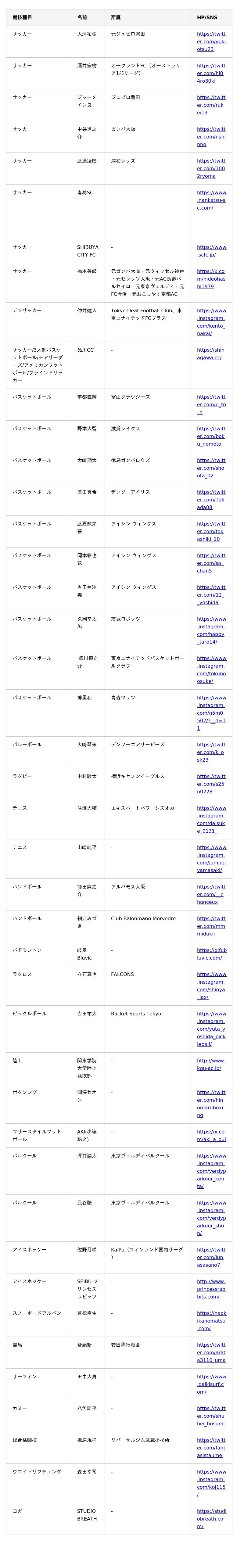 <BASE UP SPORTS サプライヤー契約一覧(現時点)>