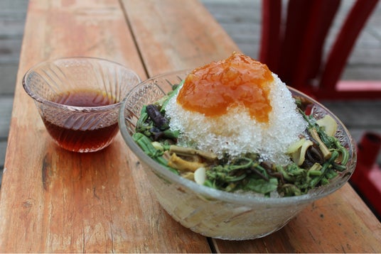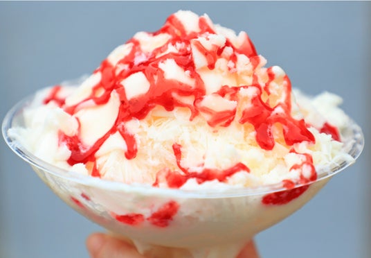 あだたらスノーアイス 600円お好きなソースが選べます(ストロベリー ・ ピーチ ・ チョコ)