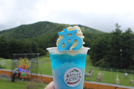 また、7月27日(土)より、「あだたらやま」の「あ」にフォーカスした新たな不思議モニュメント「【あ】のオブジェ」が、ロープウェイ山頂の展望広場に登場。よく見ると母音がア段だらけの「あだたらやま」で、阿武隈の山並みや安達太良の空をバックに、「何これ?」なインスタ映え写真を撮ることができます。加えて、ひらがなの「あ」がインパクト抜群な新メニュー「【あ】のチュロス」、「【あ】のソフトクリーム」、「【あ】のかき氷ソフト」も登場いたします。