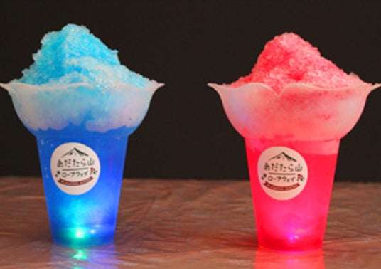 「富士急レストハウス」では、暑い夏にぴったりのメニューを販売いたします。夏のあだたらの定番スイーツとなった雪のようなふわふわ食感の「あだたらスノーアイス」や、イルミネーションと共にお楽しみいただける「光る氷ドリンク」、「光るかき氷」、ピリッと辛い「冷やし担々麺」、かき氷をたっぷりのせた「かき氷そば」もご賞味いただけます。