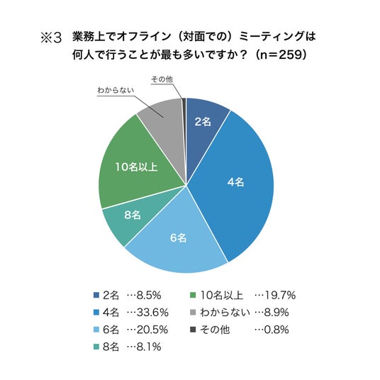(※3)業務上でオンライン(対面での)ミーティングは何人で行うことが最も多いですか?(n=259)