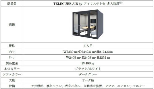 アイリスグループのアイリスチトセ株式会社(本社:宮城県仙台市、代表取締役会長 大山 富生、以下、当社)は、多人数用の個室(クローズ)型のブース「TELECUBE AIR byアイリスチトセ 多人数用」を2025年6月24日より発売します。