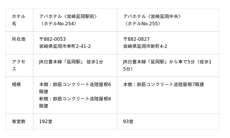 アパホテル〈宮崎延岡中央〉公式HP:https://www.apahotel.com/hotel/kyushu-okinawa/miyazaki/nobeoka-chuou/