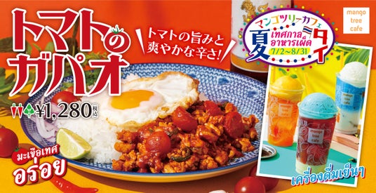 「マンゴツリーカフェの夏祭り」では、これからの季節に相応しいドリンクや、今しか味わえない「トマトのガパオ」が新登場します。さらに、スパイシーなタイ料理を引き立てるタイのプレミアムビール「シンハー」は、いつもよりお得にお楽しみいただけます。