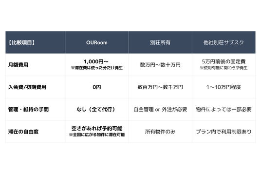・事業内容:別荘サブスクリプションサービス「OURoom」の運営