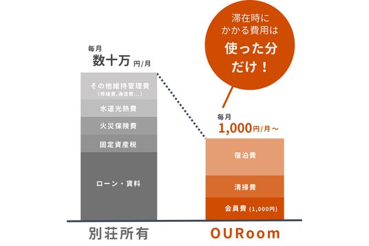 OURoomの別荘暮らしに必要な月々の負担は必要最小限