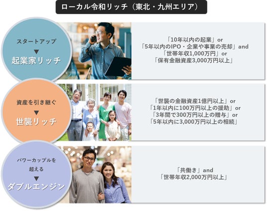 (東北令和リッチ105/九州令和リッチ135/東北一般層57/九州一般層74/首都圏令和リッチ600)