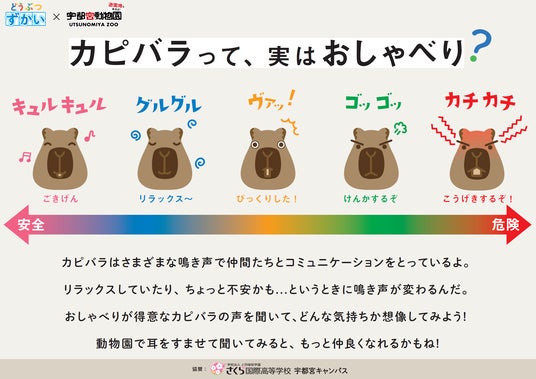 2025年2月より、宇都宮動物園にて先行導入された「どうぶつずかい」では、特に人気が高いキリン、ライオン、ペンギン、カピバラなど全6種類の動物を図解した“どうぶつずかいパネル”を展示しています。