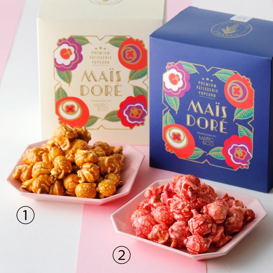 〈MAIS DORE〉プレミアムポップコーン(1.キャラメル 2.ベリーベリー)(1箱)各税込1,350円