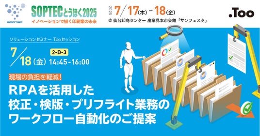 クリエイティブ市場の総合商社・株式会社Too(本社/東京都港区虎ノ門3-4-7、社長/石井剛太、以下Too)は、2025年7月17日(木)- 18日(金)に仙台卸商センター 産業見本市会館 サンフェスタで開催される「SOPTECとうほく2025 - イノベーションで描く印刷業の未来 - 」のソリューションセミナーに登壇します。