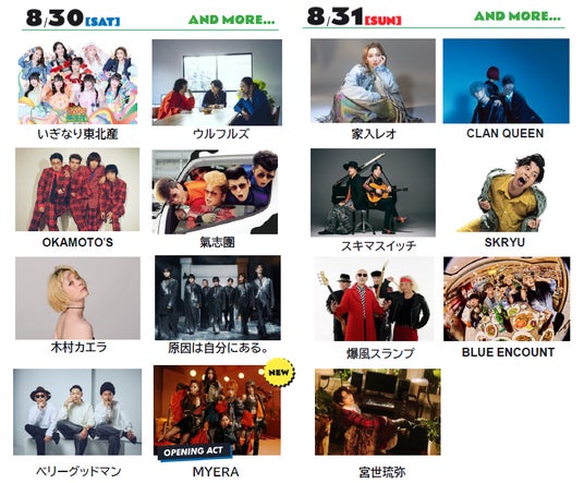 ・家入レオ ・いぎなり東北産 ・ウルフルズ ・OKAMOTO‘S