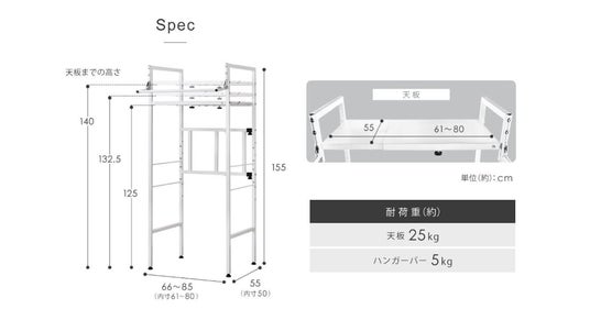 - 耐荷重 :(約)天板25kg / ハンガーバー5kg