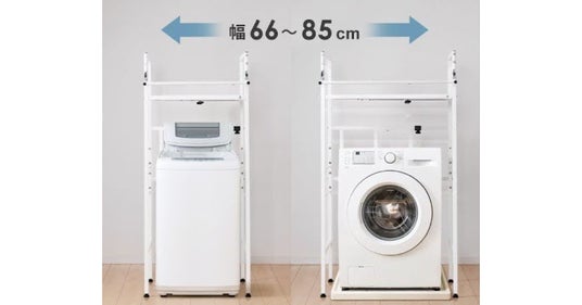 お持ちの洗濯機の幅やランドリースペースに合うように、幅は66~85cmまで無段階に伸縮が可能。洗濯機の上部のデッドスペースを有効活用できるので、スペースパフォーマンスが高い商品です。