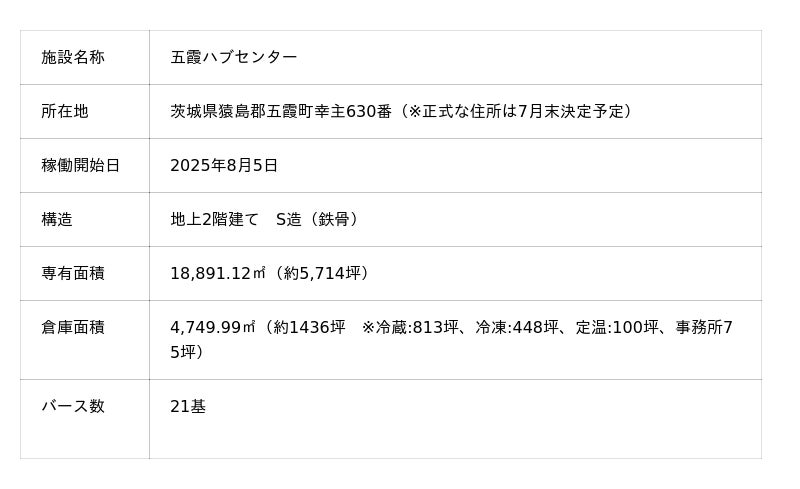 この取り組みにより、関東における新たな拠点展開を本格化させるとともに、サプライチェーン全体の最適化と顧客サービスの強化を目指します。