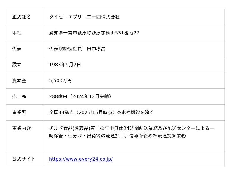 ダイセーエブリー二十四株式会社(本社:愛知県一宮市、代表取締役社長:田中孝昌、以下「当社」)は、関東における物流ネットワークの再構築と強化を目的として、茨城県五霞町に新たな物流拠点「五霞ハブセンター」(以下「本施設」)を開設いたします。本施設は、2025年8月5日に稼働を予定しており、開所式は7月30日に執り行う予定です。