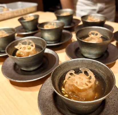 本来の目的である「生産者との共創」も加速させていくべく、茨城県稲敷市にある(株)れんこん三兄弟の蓮根を使用した「蓮根饅頭」をコースの一品料理として提供していきます。