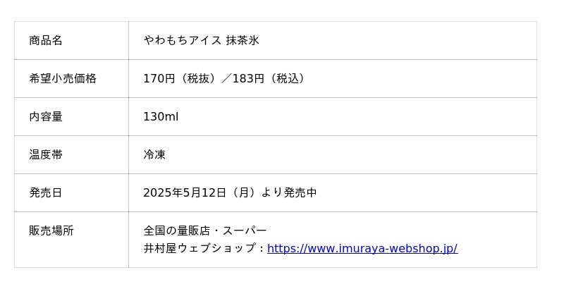 <『やわもちアイス 抹茶氷』商品情報>