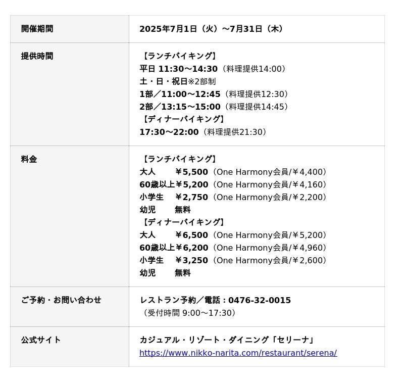 ホテル日航成田(所在地:千葉県成田市、総支配人 山田 篤)では、2025年7月1日(火)~7月31日(木)の期間に、カジュアル・リゾート・ダイニング「セリーナ」にて『メロンフェア 常夏ハワイアンフェス』を開催します。ハワイ料理でおなじみのメニューの数々を「セリーナ」流にアレンジしてご提供するほか、フレッシュメロンの食べ放題もお楽しみいただけます。