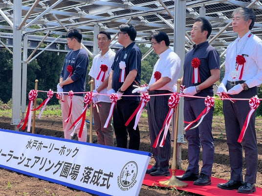 株式会社フットボールクラブ水戸ホーリーホック(代表取締役社長:小島耕 以下、水戸ホーリーホック)は、地域とともに持続可能な未来を目指す「GXプロジェクト」の一環として、ソーラーシェアリング事業を2025年6月30日(月)より茨城県東茨城郡城里町にて正式に始動いたしました。また本日、事業開始を記念して落成式を実施。多数の関係者とともに、新たな挑戦の門出を迎えました。