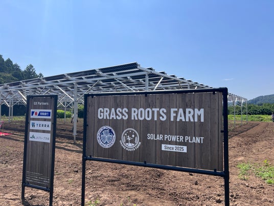 GXプロジェクトにおける第一弾事業となる本取組では、約2,000平方メートル の耕作放棄地であった農地を活用し、太陽光発電と農業を両立させる「ソーラーシェアリング」を「GRASS ROOTS FARM 太陽光発電所」として展開・始動いたします。