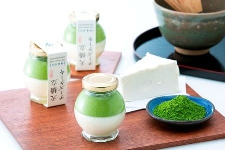 股覗きをイメージして上下逆さまに書かれたラベルが目を引く天橋立チーズケーキ。香り高い抹茶と爽やかなレアチーズがよく合います。また、肉厚なイカの一夜干しは噛むたびに香ばしい旨味が口いっぱいに広がります。
